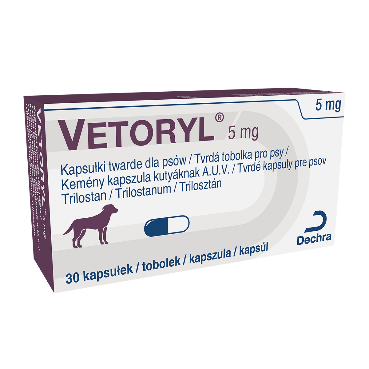 Веторил — ветеринарный лекарственный препарат на основе трилостана (trilostane), предназначенный для контроля эндогенного гиперадренокортицизма (болезни Кушинга) у собак, как при гипофиз-зависимой, так и при адренал-зависимой форме. Упаковка 5 мг удобна для мелких собак и для точной титрации дозы.